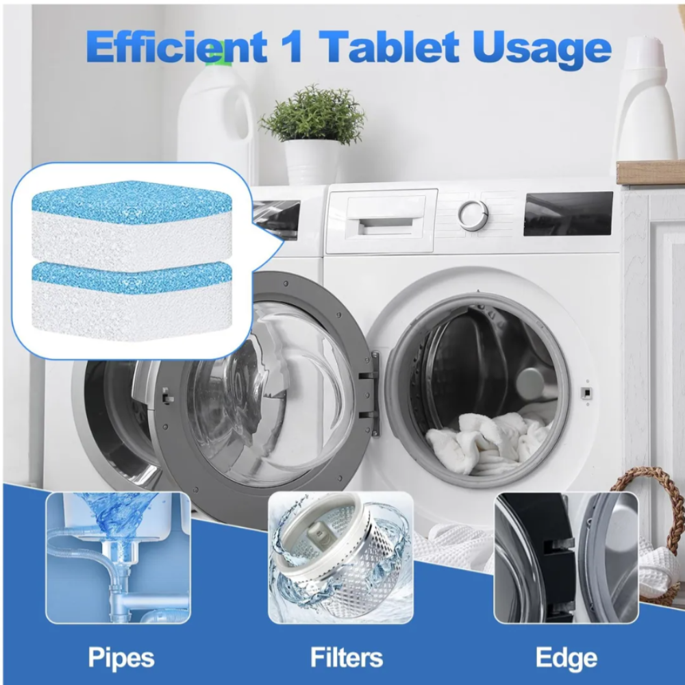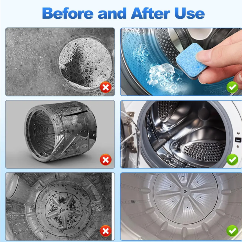 Con el paso del tiempo, restos de detergente, pelusa y suciedad se adhieren al interior de la lavadora, generando bacterias y olores desagradables. Estas pastillas actúan profundamente para deshacerse de toda esa acumulación de manera efectiva.