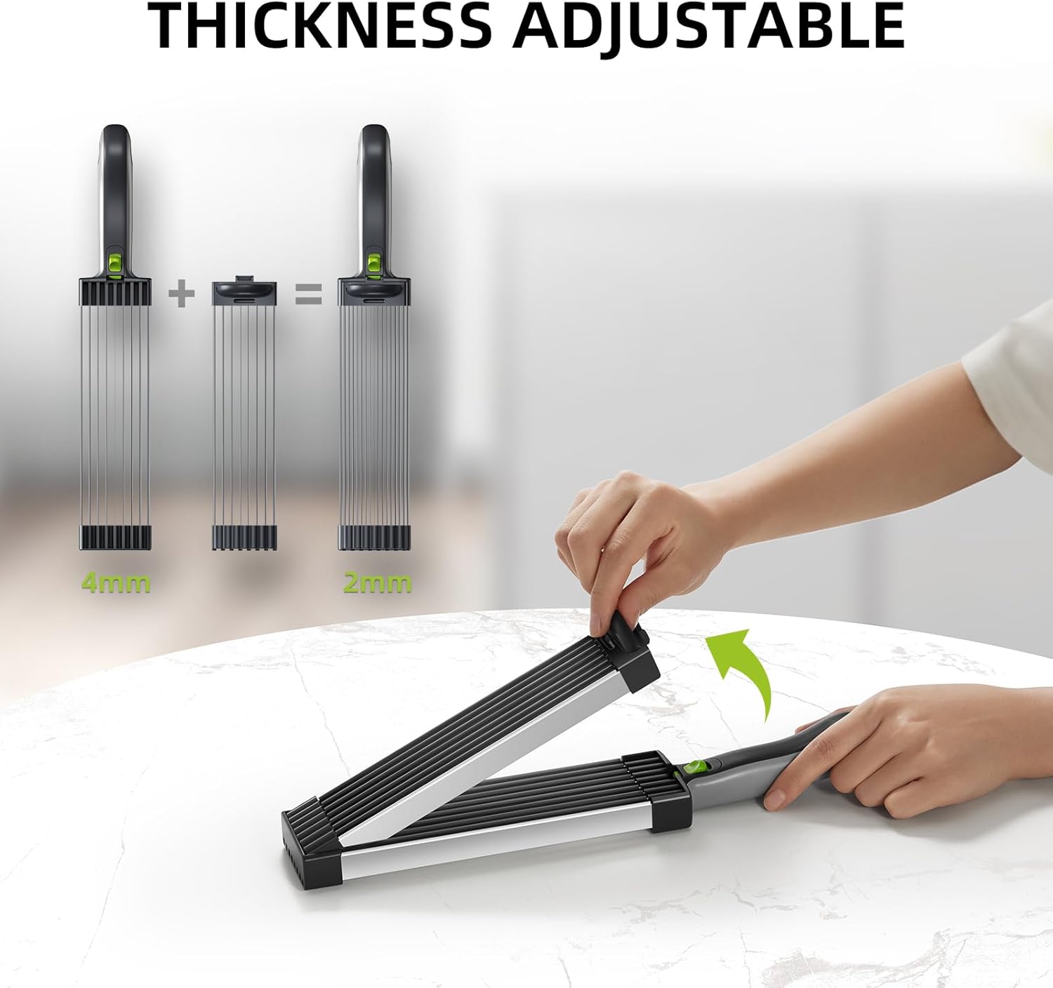 Gracias a su sistema de grosor ajustable, puedes obtener rebanadas uniformes desde 1 mm hasta 15 mm, logrando presentaciones limpias y profesionales que no solo se ven mejor, sino que también se cocinan de manera más uniforme.