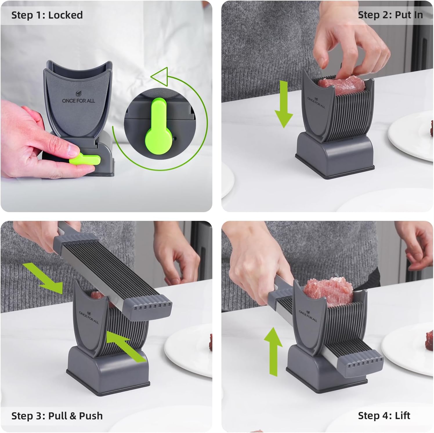 El CortaSafe – Cortador Manual De Carne Seguro está diseñado para ofrecer precisión profesional en segundos, sin el riesgo de cortarte. Su estructura firme y estable permite realizar cortes exactos de forma segura, rápida y sin esfuerzo, incluso si no tienes experiencia en cocina.