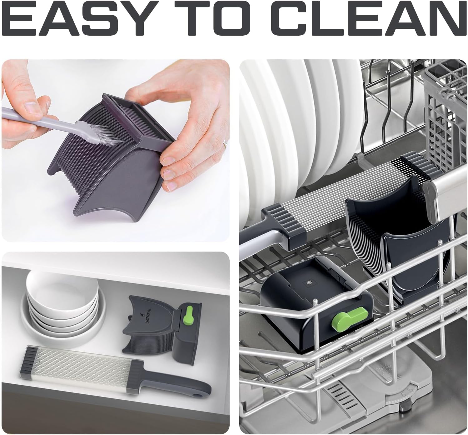 Fabricado con acero inoxidable de alta resistencia y polímero ABS de grado alimenticio, CortaSafe es duradero, higiénico y fácil de limpiar. Su base antideslizante garantiza estabilidad durante el uso, mientras que su funcionamiento 100 % manual lo hace práctico, seguro y sin necesidad de electricidad.