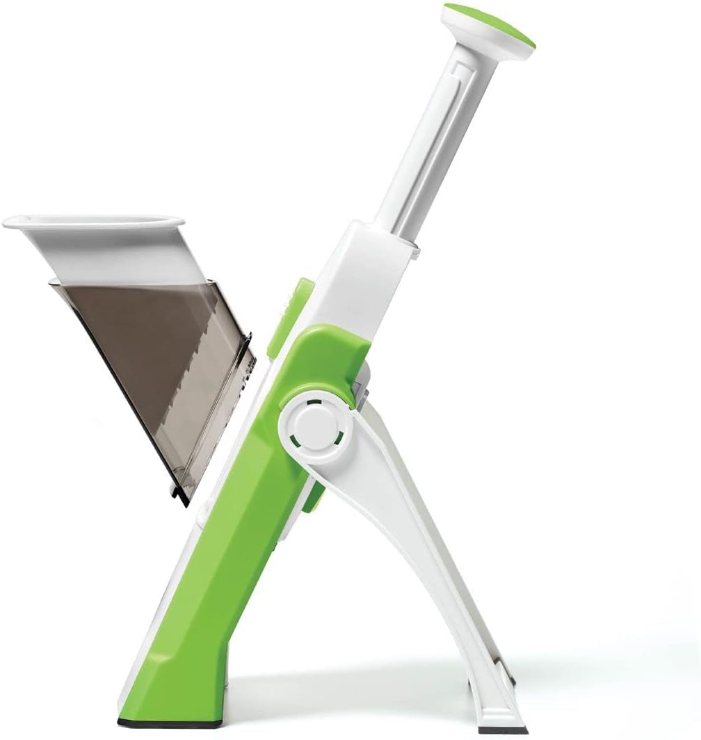Su diseño de hoja oculta mantiene los dedos alejados de las cuchillas, evitando accidentes durante el uso. Gracias a su sistema de corte por presión, permite rebanar y triturar verduras de manera uniforme con menos esfuerzo y mayor seguridad.