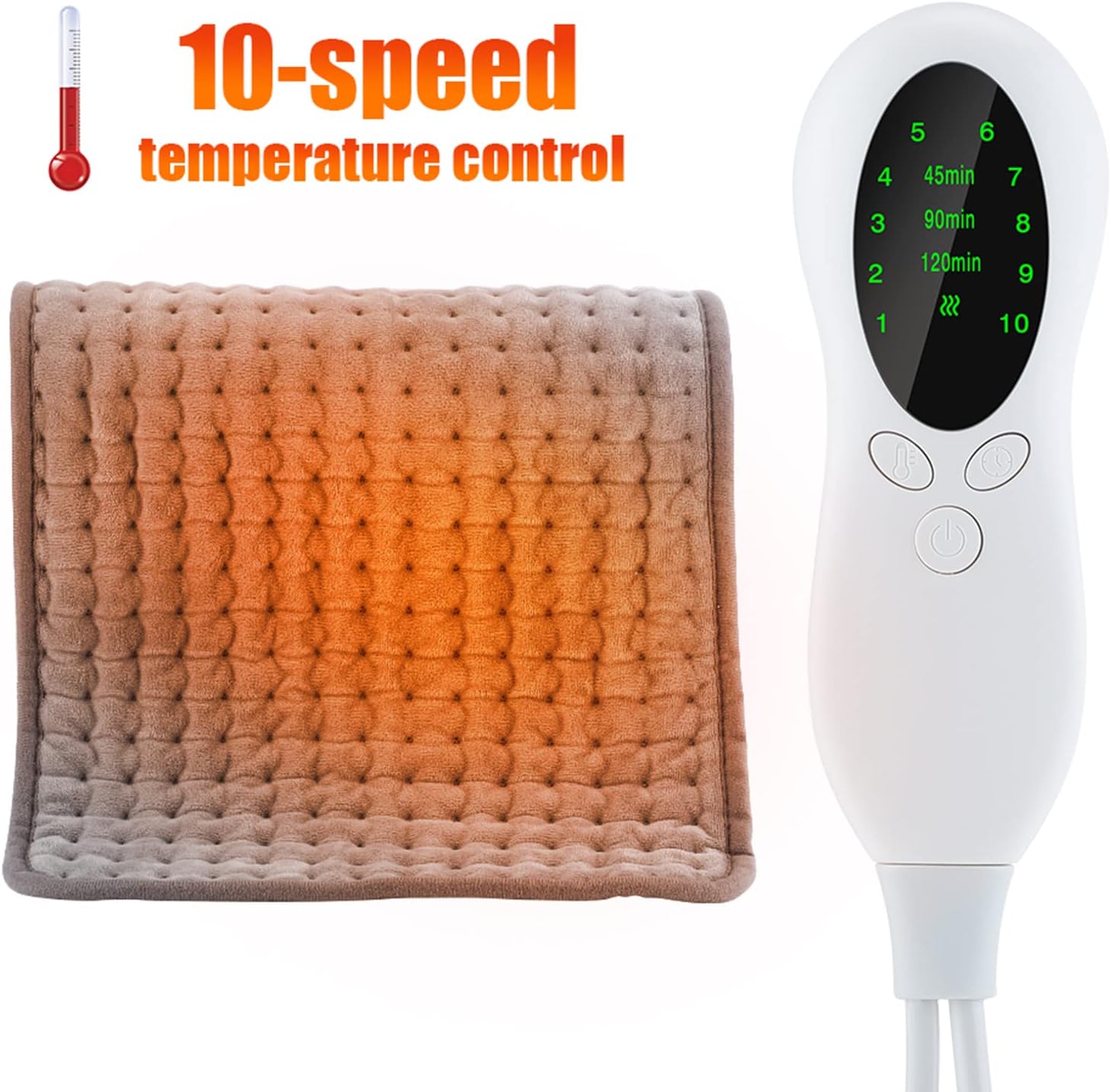 La Almohadilla Térmica Eléctrica Con Temporizador es ideal para aliviar dolores musculares, tensión y fatiga de forma segura y confortable. Gracias a su calentamiento rápido y 10 niveles de temperatura ajustables, permite personalizar el calor según tus necesidades, con un rango de 86 °F a 158 °F.