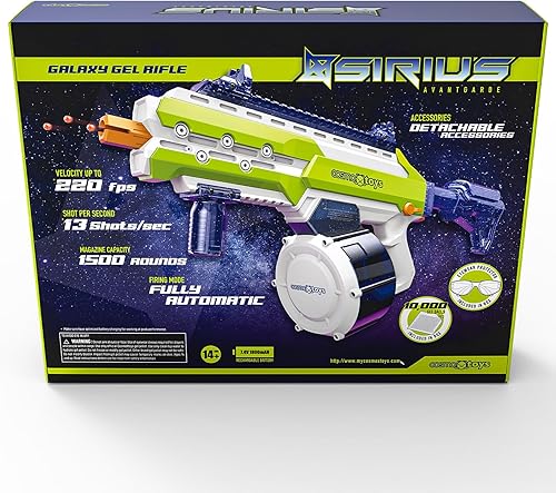 Este artículo es un rifle lanzabalines tipo Gel Blaster (bláster de gel) de estilo futurista. Está diseñado para juegos recreativos al aire libre y utiliza munición de gel hidratable, la cual es biodegradable, ligera y estalla al impacto, reduciendo riesgos de daño.